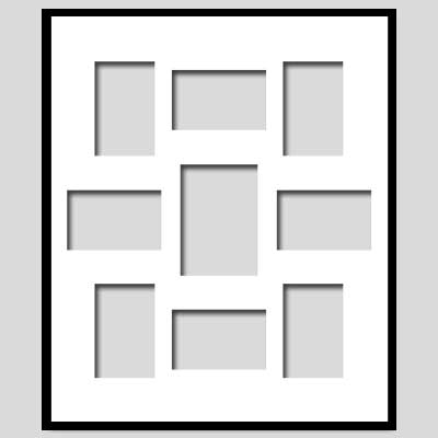 Picture mat board with more than one window is sometimes referred to as collage photo mats and all of these designs may be cut from any of the matting materials and colors we carry from economy grade up to the finest museum 8ply cotton rag boards. If you have your own layout we can custom cut that for a virtually unlimited number of custom options with multiple window openings.